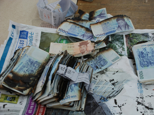 한은 경기본부 관계자는 “예로부터 어른들이 돈을 몰래 보관해오는 습관이 있는 데 땅속이나 장판 밑, 두엄, 전자레인지 속 등에 보관해 훼손되는 경우가 많다”며 “가급적 금융기관에 예치하도록 자녀들이 유도해야 한다”고 말했다.