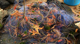 | 불가사리는 그물에 달라붙어 어민의 양식을 먹어치우며 어로활동을 방해한다. |