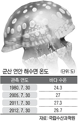 해파리 떼가 기승을 부리는 것은 해수면 수온이 지난달 27.4도로 예년 평균(26도)보다 1∼2도 상승한 때문이다. 노무라입깃해파리는 여름철에 출현하는 종류로 수온이 상승할 때 빠르게 확산된다.