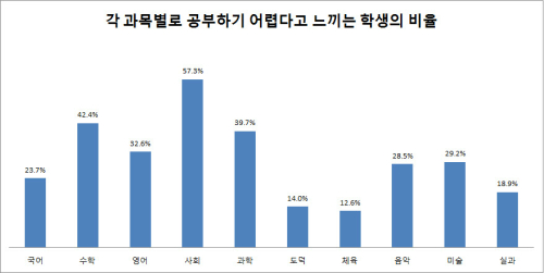 참교육연구소가 교과서와 교육과정에 대해 설문조사를 실시한 결과를 보면 더욱 명확해진다. 많은 교사가 사회를 가장 가르치기 어려운 교과로 꼽고 있으며, 학생들의 57.3%도 사회가 가장 어렵다고 답했다.
