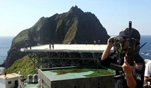 | 독도경비대원이 지난 14일 경북 울릉군 울릉읍 독도리 산 1-96번지 독도 경비초소에서 주위를 살펴보고 있다. 경찰은 일본인들의 독도 입도 등에 대비해 최근 주 1회 실시하던 상륙 저지 훈련을 매일 1회로 늘리고 레이더 감시요원을 추가 배치하는 등 독도 경비를 강화했다. 세계일보 자료사진 |