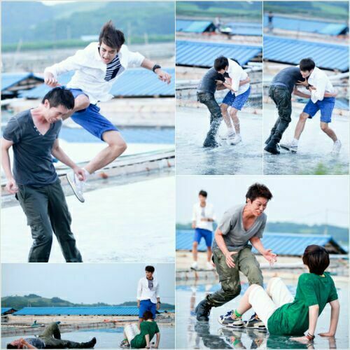 민호가 설리를 구하기 위해 육탄전을 벌인 장면은 지난 8일 충청남도 안면도의 한 염전에서 7시간 동안 진행됐다. 이날 활기차게 촬영장에 등장한 설리와 민호는 대역 없이 완성해야 할 고난이도 액션 장면을 완벽히 소화하기 위해 끊임없이 연습을 거듭했다. 촬영이 진행될수록 염전 바닥에 고여 있는 소금물이 온 몸에 묻으며 체력적으로 지칠 수밖에 없었지만, 두 사람은 개의치 않고 열정을 불태우며 촬영에 몰입했다는 후문이다.