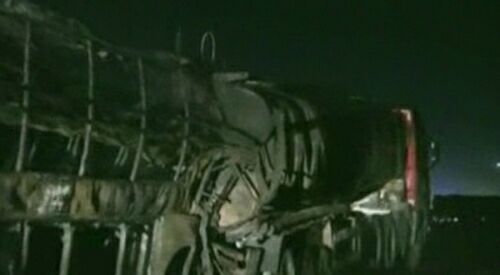 정부는 장거리운행에 지친 버스운전사의 졸음운전으로 사고가 난 것으로 보고 있으며, 유조차에 실려 있던 메탄올이 쏟아지면서 불이 나 인명피해가 커졌다고 밝혔다.