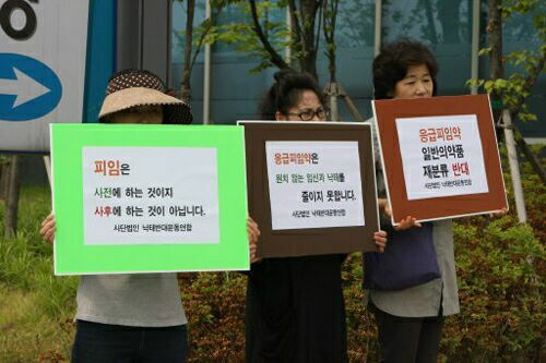 | 시민단체 회원들이 서울 양천구 목동 서울지방식품의약품안전청 앞에서 응급피임약의 일반의약품 분류에 반대하는 시위를 하고 있다. 세계일보 자료사진 |