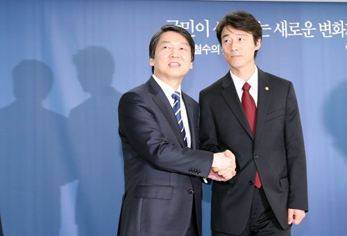 안 후보는 지난해 10ㆍ26 서울시장 보궐선거 국면에서 박원순 후보에게 후보직을 양보하고 직간접 지원에 나서 당선을 도왔다. 송 의원은 당시 박 후보의 대변인을 맡았다.