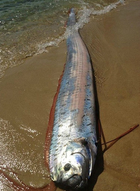멕시코 해변에서 ‘전설 속 물고기’로 알려진 초대형 산갈치가 발견됐다. 미국 허핑턴포스트는 지난 12일(현지시간) 멕시코 아시엔다 해변 인근에서 심해 희귀종인 산갈치가 관광객들에게 발견됐다고 보도했다.