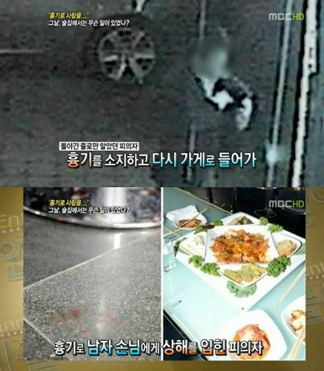 취재진이 공개한 폐쇄회로(CC)TV 화면에서는 제갈모(38)씨가 흉기를 들고 술집으로 들어가는 모습이 확인됐다. 당시 사건 현장에 있었던 목격자는 “여자분 일행이 대화를 나누고 있었는데 그 옆에 혼자 오신 분이 그 사람들에게 ‘조용히 하라’고 말했다”며 “술에 취한 남성을 직원들이 데리고 주차장에 갔다. 집으로 간 줄 알았는데 다시 돌아온 것”이라고 말했다.