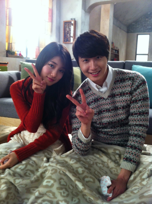 정일우는 지난 5일 자신의 트위터에 수지와 한 담요를 덮고 사이좋은 포즈를 취한 사진을 게재했다. 해당 사진 속 두 사람은 광고 촬영 중 담요를 함께 덮은 채 귀여운 포즈를 취하고 있다.