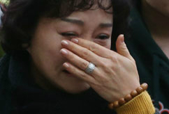 2013학년도 대학수학능력시험이 실시된 8일 오전 서울 강남구 압구정동에서 수험생을 고사장으로 들여보낸 한 학부모가 눈물을 흘리고 있다.