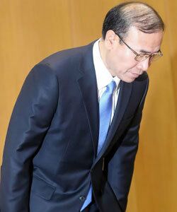 한 총장은 두 문장째 사퇴 발표문을 읽은 뒤 다시 한 번 옆으로 비켜 나와 허리 숙여 사죄의 인사를 했다.