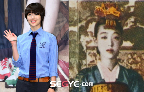 에프엑스 설리와 조선 대표 기생 이난향과의 닮은꼴 사진이 공개돼 화제다.