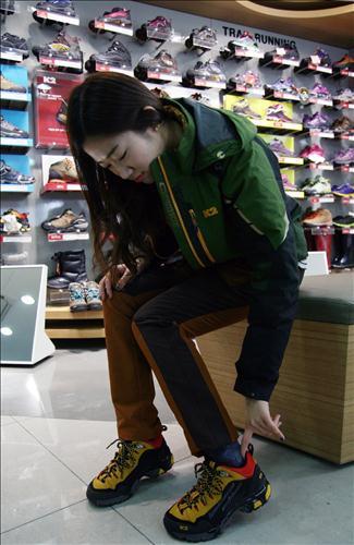 등산화를 고를때는 발 사이즈보다 5~10㎜ 큰 제품을 선택해야 한다. 신었을 때 발가락이 신발 앞축에 닿지 않으며 뒷부분에 손가락 하나가 들어가는 정도가 적당하다.