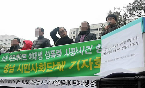 이날 공판이 열린 법원 앞에는 유족과 시민단체 관계자들이 모여 가해자를 엄중히 처벌하라고 요구하는 기자회견을 열었다. 피해자의 어머니는 딸에게 쓴 편지에서 “인간의 탈을 쓴 악마에게 9년형이 선고됐을 때 몸과 마음이 분열됐다”며 “죄를 뉘우치기는커녕 저 혼자 살기 위해 9년을 깎겠다고 항소했다”고 눈물을 쏟았다.