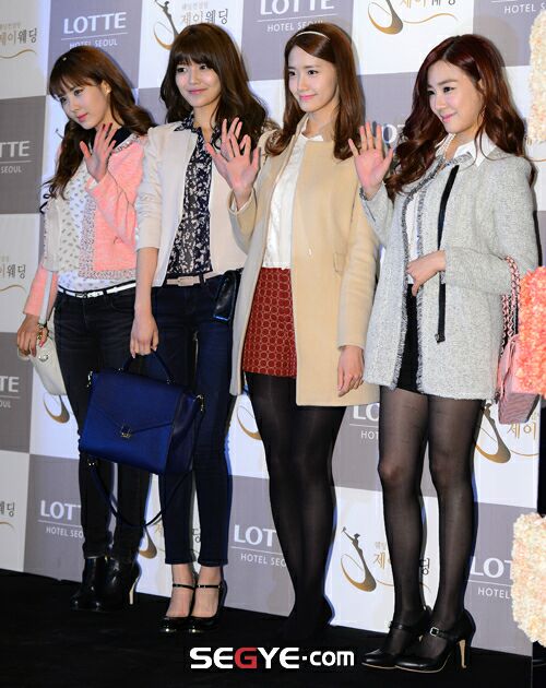 걸그룹 소녀시대의 서현, 수영, 윤아, 티파니가 26일 오전 소공동 롯데호텔에서 열리는 선예(24)의 결혼식에 참석해 포즈를 취하고 있다.
