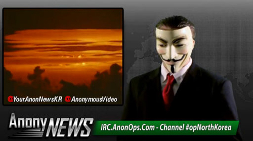 국제 해킹집단 어나너머스가 북한의 대남 선전사이트 ‘우리민족끼리’를 해킹한 사실을 알리는 영상뉴스 화면.