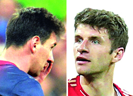 왼쪽 허벅지 부상에서 보름 만에 복귀한 골잡이 메시가 제 몫을 다하지 못한 반면에 ‘영건’ 뮐러의 활약은 눈부셨다. 뮐러의 공식 기록은 2골 1도움이지만 사실상 뮌헨의 4골에 모두 기여했다. 메시는 슈팅을 한 번도 못했다. 세계 최고의 축구스타라는 말이 무색할 정도다.