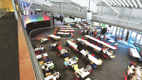 | 미국 실리콘밸리에 위치한 구글 캠퍼스(본사) 내에 마련된 직원용 식당인 ‘찰리스 카페’의 모습. 직원들이 무료로 이용할 수 있는 공간으로 매월 한 차례 직원과 임원 간 대화의 장인 ‘타운홀미팅’이 열리기도 한다. |