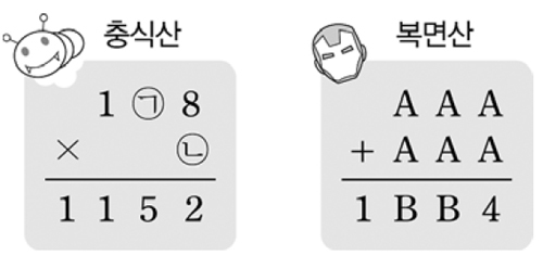 이처럼 충식산과 복면산은 덧셈과 뺄셈, 곱셈, 나눗셈 등 여러 가지 연산 절차와 제시된 조건으로 예상하고 확인하는 방법으로 문제를 해결하는 수학퍼즐인 셈이다. 직감으로 해결할 수도 있지만 8×㉡의 일의 자리 숫자가 2임에, 또 A+A의 일의 자리 숫자가 4임에 착안하여 ㉡과 A가 될 수를 추리하는 사고과정을 거쳐 해결한다. 특히 이런 계산 과정이 연필을 사용하지 않고 머리로 이뤄져 훌륭한 사고 훈련이 된다. 원인과 결과를 짜임새 있게 맞춰 가면서 생각하는 과정이 논리적인 사고력을 기르는 데 적잖은 도움이 된다는 얘기다.