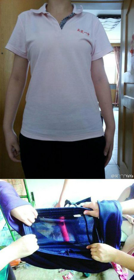 문제의 교복은 허베이성의 한 고등학교 여학생이 입는 하복으로 얇은 망사 소재로 돼 있다. 해당 학교 여학생들은 "수치스럽다", "속옷까지 비치는 것 같아 입을 수 없다"며 반발하고 있다.