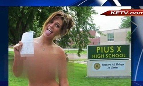 9일(현지시간) 뉴욕데일리뉴스에 따르면 네브래스카주 링컨시에 사는 발레리 도즈(19)는 학교 무단 침입 및 공공 노출 등 혐의로 경찰에 입건됐다. 도즈는 지난달 13일 모교인 네브래스카 가톨릭 고등학교를 찾아 학교 상징물 등 교내에서 누드사진과 영상을 촬영했다. 이튿날 학교에 다시 나타나 속옷만 입고 사진 촬영을 하기도 했다.