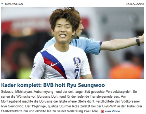 류승우는 16일 연합뉴스와의 인터뷰에서 “조심스럽다”며 “마음을 정하지 않았다”고 말했다. 독일 축구전문 매체 키커는 앞선 15일(현지시각) ‘도르트문트가 류승우와 계약했다’고 보도한 바 있다. 도르트문트는 ‘2012-2013 유럽축구연맹(UEFA) 챔피언스리그’에서 준우승한 팀으로 지난 시즌 분데스리가 2위에 올랐다.