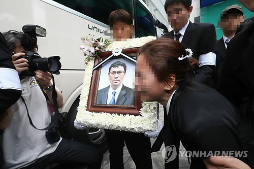 21일 오전 10시 고려대 구로병원에서는 김철덕(53)·박명춘(48)·박웅길(55)·이명규(61)·이승철(54)·임경섭(44)·조호용(60)씨 등 사고 희생자 7명의 합동영결식이 가족장으로 거행됐다.