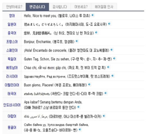 최근 해외여행이 급증하면서 외국어 인사법에 대한 네티즌들의 관심이 높아지자 포털사이트 네이버는 기초적인 회화 표현이 국가별로 정리된 표를 공개했다.