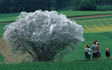그러나 가까이 다가서는 순간 나무의 모습에 놀라게 된다. 솜사탕처럼 보인 것의 정체는 새하얀 거미줄과 수만 마리의 벌레들이기 때문이다. 이 나무에 붙은 벌레는 집나방상과의 유충으로 현재 나방이 되려 준비하고 있다. 나무에 붙은 거미줄처럼 보이는 물질은 벌레들이 뽑아낸 명주실이며, 천적으로부터 벌레들을 보호해주는 것으로 알려졌다.