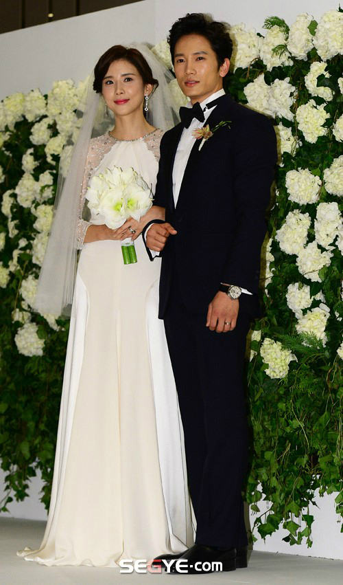배우 이보영이 지성과의 결혼식을 위해 청순함과 세련미가 공존하는 웨딩드레스를 입었다.