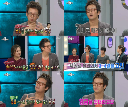 김정태는 2일 오후 방송된 MBC 예능프로그램 '황금어장-라디오 스타'에 출연해 "정우성과 영화 '똥개'를 통해 처음 만났다. 싸우는 장면이 많은 작품이었기 때문에 4개월 동안을 같이 운동을 하면서 친해졌다"고 운을 뗐다.