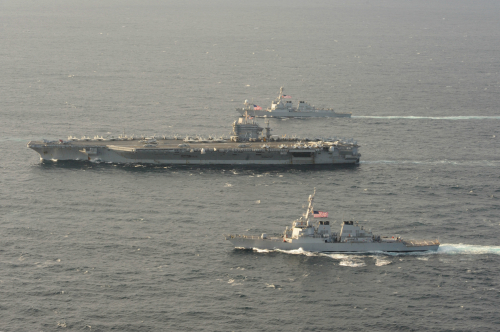 현재 남해에는 미 항모 조지워싱턴과 순양함 앤티텀, 구축함 프레블 등이 대기하고 있다.