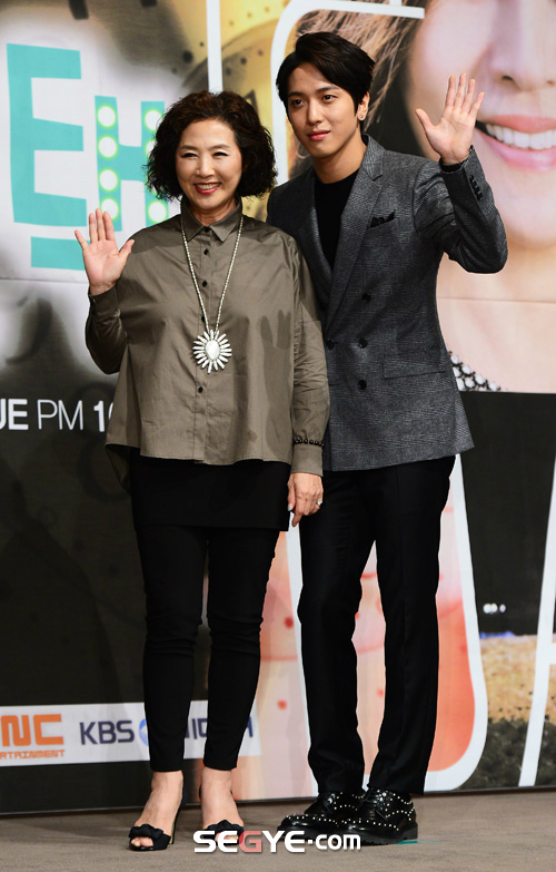 배우 정용화, 고두심이 10일 오후 서울 강남 대치동 컨벤션 벨라지움에서 열린 KBS 새 월화드라마 '미래의 선택' 제작발표회에 참석해 포즈를 취하고 있다.