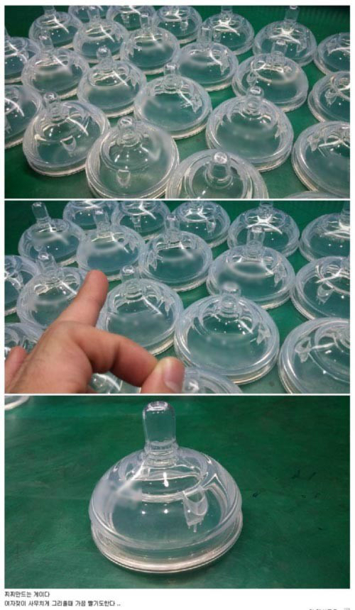 젖병 만드는 회사 직원으로 추정되는 게시자는 자신을 '찌찌만드는 게이'라 소개했다. 이어 "여자젖이 사무치게 그리울때 가끔 빨기도 한다"고 밝혀 충격을 안겼다.