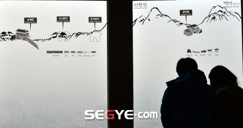초미세먼지 농도 '주의보 예비단계'가 발령된 16일 오후 서울 남산N타워에서 바라본 서울 시내가 한치 앞도 안보이고 있다.