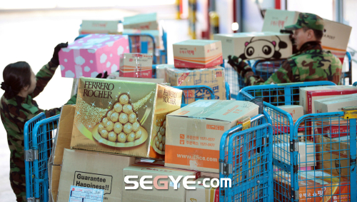 하지만 군대에서 자신만을 바라보며 추운 겨울을 이겨내고 있는 남자친구를 위해서라면 이것저것 챙겨주고 싶은게 인지상정. 때문에 발렌타인 데이를 전후로 군부대에 들어오는 소포의 양은 평균치의 2~3배에 달할 정도로 많고, 그 무게도 무겁다.