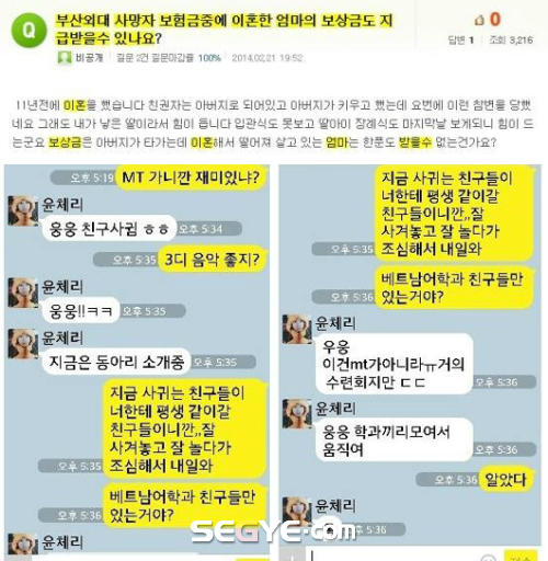 공개된 이미지는 ‘부산외대 사망자 보험금 중에 이혼한 엄마의 보상금도 지급받을 수 있나요’라는 제목의 질문글을 보여준다. 게시자는 글에서 “11년 전 이혼했다”며 “친권자인 아버지가 딸을 키우던 중 이런 참변을 당했다”고 말했다. 이어 “그래도 내가 낳은 딸이라 힘들다”며 “보상금은 아버지가 타가는데 이혼해서 떨어진 엄마는 한 푼도 받을 수 없는 거냐”고 물었다.
