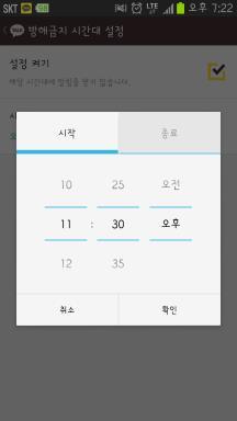 평소 수시로 울리는 메시지 알람 때문에 불편했다면 원하는 방해금지 시간대를 설정해 놓고 알람을 차단할 수 있다.