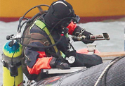 세월호 침몰 사고 현장에서 실종자 수색 작업에 투입된 백진환(42) 울산 동부소방서 수난의용소방대장은 21일 “10∼20㎝ 앞에 있는 물체도 알아보기 힘들 정도로 시야 확보가 안 돼 오로지 촉감에 의존해 확인하고 있다”고 구조작업 상황을 설명했다. 그는 18일부터 20일까지 침몰된 세월호 내부에 들어가 수색작업을 벌였다.