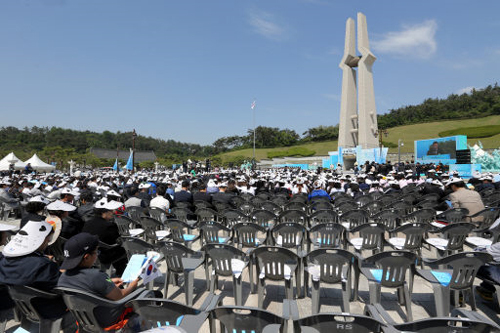 文 “5·18과 세월호 뭐가 다른가”, 與 “정쟁유발 무책임 발언” 비판 광주시 국립 5·18 민주묘지에서 열린 34주년 민주화운동 공식 기념식은 ‘임을 위한 행진곡’의 기념곡 지정 무산에 반발해 야당 지도부와 5·18 유족이 불참하면서 반쪽 행사로 치러졌다. 올해 기념식에는 박근혜 대통령을 대신해 정홍원 국무총리와 새누리당 비대위원장인 이완구 원내대표 등 신임 지도부가 참석했다.