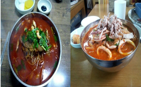 | 대구 '진흥반점'의 매운맛 짬뽕(왼쪽)과 군산 '복성루' 짬뽕이 먹음직스럽다. |