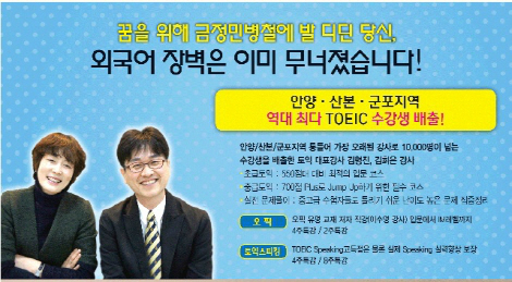 실제 금정· 평촌· 산본· 범계 지역에서도 토익 및 토익스피킹 강좌의 수요가 증가하고 있다고 전해졌다.