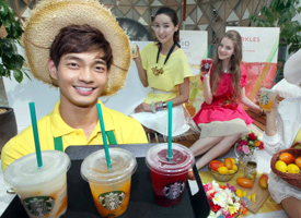 스타벅스 코리아가 28일 오전 서울 강남구 센트럴시티 파미에파크점에서 한국진출 15주년을 기념해 바리스타가 직접 수작업으로 제공하는 프리미엄 스파클링 음료인 '스타벅스 피지오'를 모델들이 선보이고 있다
