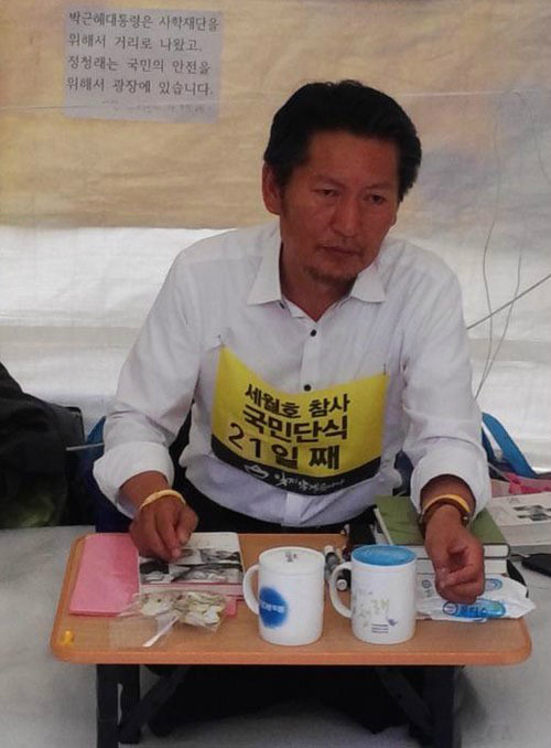 세월호특별법 제정을 촉구하며 단식 농성을 벌인 새정치민주연합 정청래 의원이 14일 단식 중단을 선언했다.