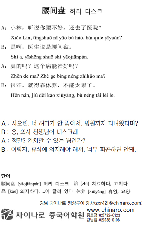 [生生 중국어 한마디] 허리 디스크