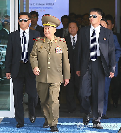 황 총정치국장과 최룡해 비서는 차량 뒷좌석에 나란히 앉았고, 김양건 비서는 마중 나온 김남식 통일부 차관과 다른 차량에 탄 뒤 10시30분께 경찰차의 호위를 받으며 인천 시내로 출발했다.