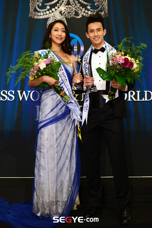 송화영, 서영석 참가자가 10일 오후 강원도 영월군 영월읍 동강 시스타에서 진행된 '2014 미스 월드& 미스터 월드 코리아' 파이널 대회에 참석해 미소를 짓고 있다.