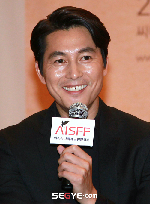 배우 정우성이 14일 오전 서울 광화문 대우건설 금호아트홀에서 열린 제 12회 아이아나국제단편영화제 기자간담회에 참석해 질문에 답하고 있다.