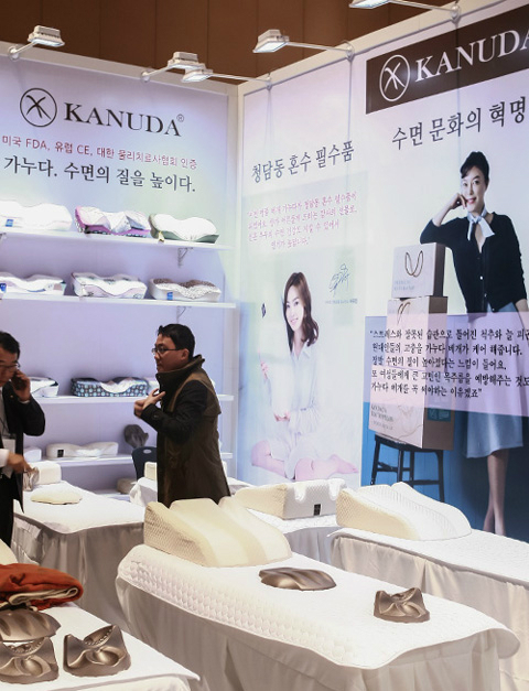 기존 제품보다 경쟁력을 높인 프리미엄 정형베개도 이목을 집중시켰다. 견인력을 강화시켰을 뿐만 아니라 패드를 갖춰 몸에 맞게 높낮이 조절을 가능토록 해 일반 기능성베개와 차별화를 꾀했다. 여기에 체내 노폐물 제거를 촉진하고 스트레스와 분노를 감소시키는 CV4시술효과도 한층 더 강화했다.