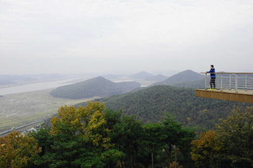 오천항에서 보령방조제 쪽을 올려다보면 산 정상 아래 거대한 스카이워크 형상의 전망대가 바다 쪽으로 돌출해 있다. 얼마 전 새로 세운 ‘팔색보령수필 전망대’로서 천수만 낙조와 오천항 일대, 보령방조제 등을 한눈에 조망할 수 있다. ‘팔색보령수필’이란 보령 출신 문인 이문구의 작품인 ‘관촌수필’의 8가지 주제를 모티브로 경관을 조성했다고 해서 붙여진 이름이다. 바닷가 도로에서 전망대에 이르는 직선의 등산로는 500m쯤 되는데, 산허리를 돌아 도미 부인 사당 쪽에서 2㎞쯤 되는 비포장 임도를 따라 가면 자동차로 금세 전망대에 오를 수 있다.