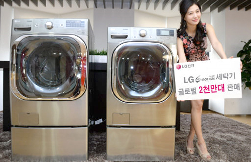 | ‘6모션’기술이 채택된 LG전자 세탁기가 지난달 글로벌 판매 2000만대를 돌파했다. LG전자 제공 |